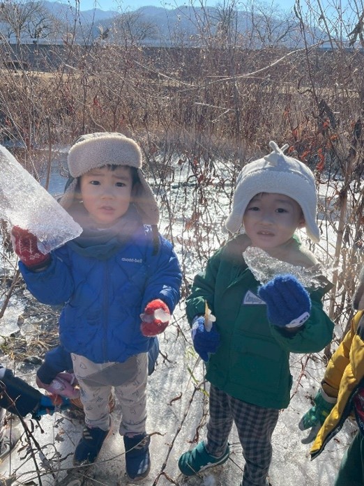 山の子保育園では、冬も寒さに負けずに外遊びを楽しんでいます。